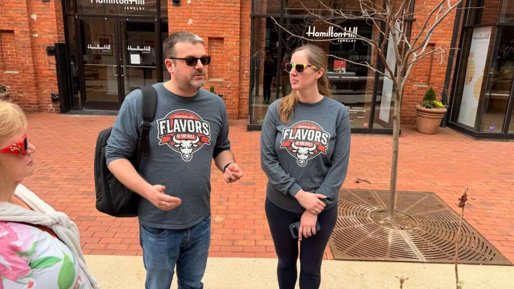 Enter Drafts of the Bull, a guided brewery walking tour run by the team behind Flavors of the Bull, where small groups wind their way through downtown Durham, stopping at several breweries along the route. Along the way, you get a little local history, a few bites of food, and roughly 15 beer samples that cover a wide range of styles—from easy-drinking lagers to the occasional curveball, like a blackberry dragon fruit sour.
