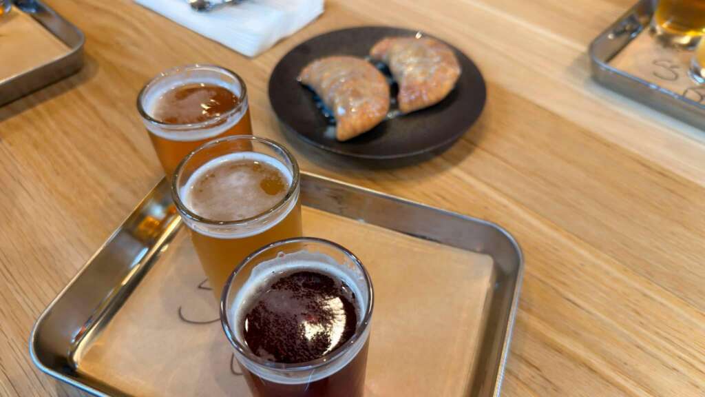 The flight of five beers featured a hazy IPA, a cranberry kettle sour, an altbier, and two of the group’s favorites—a peach wheat beer and a sea salt and lime lager. Now, I don’t want to get too descriptive about the beers because, as Hollis points out, they’ll change throughout the seasons—so what I have today, you might not have tomorrow.