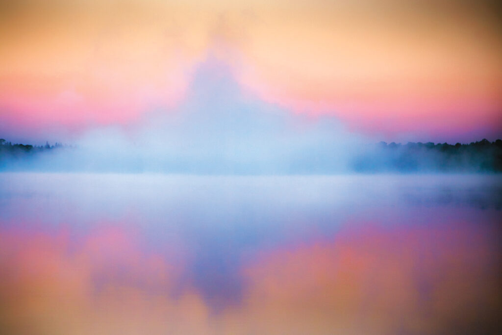 We watched the fog swirl and extend gray wings as a plume soared midsection. Within the fog’s heart, an eruption of feathers shattered the silence. Materializing like phantoms, wingtips flailing the water, Canada geese launched down their watery runway, leaving an anhinga behind.