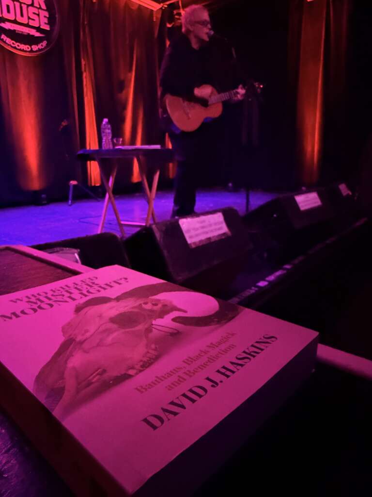 But this night wasn’t about the high drama of a full band show or a nostalgic replay of past glories. It was David J, a single acoustic guitar, a copy of his book Rhapsody, Threnody & Prayer, a bottle of water, and a glass of bourbon. A minimalist setup for a deeply personal evening.