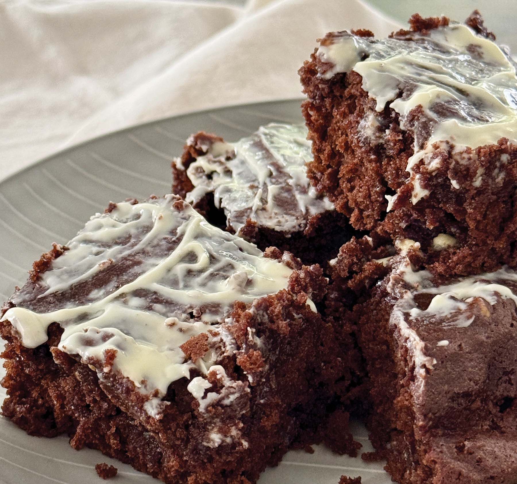 A fudgy brownie with a rich cocoa base and creamy white chocolate chip glaze, perfect for your next holiday gathering.