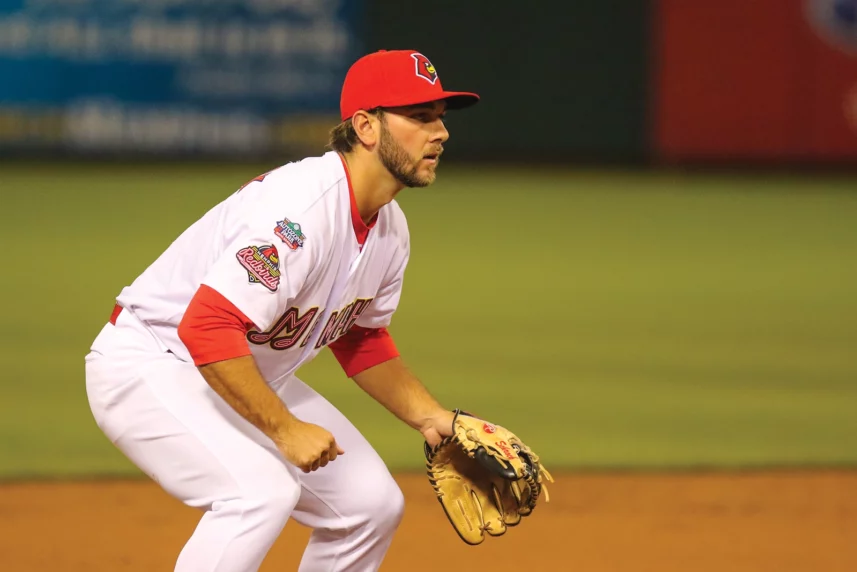 Max and Sarah married in January 2018, just one month after Max was traded to the St. Louis Cardinals. He was assigned to the AAA Memphis Redbirds, just one step from the major leagues. “That was the worst season I ever had,” he says. “It was all about me putting way too much pressure on myself. The carrot is dangling right in front of your eyes. I was 23 at the time. I started trying to do things I wasn’t good at. That’s the hardest thing about playing in AAA, is being that close and knowing your dream is right there at your fingertips.”