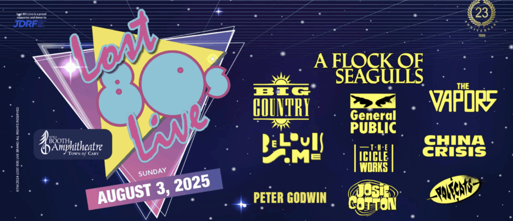• HITS FROM THE PAST. If you love synthesizers and music from the 1980s, The Lost 80’s Live comes to Koka Booth Amphitheatre on Sunday, August 3 at 6 p.m. The lineup includes A Flock of Seagulls, Big Country, General Public, The Vapors, Belouis Some, The Icicle Works, Josie Cotton, China Crisis, The Polecats and Peter Godwin. Doors open at 4:30 p.m.
