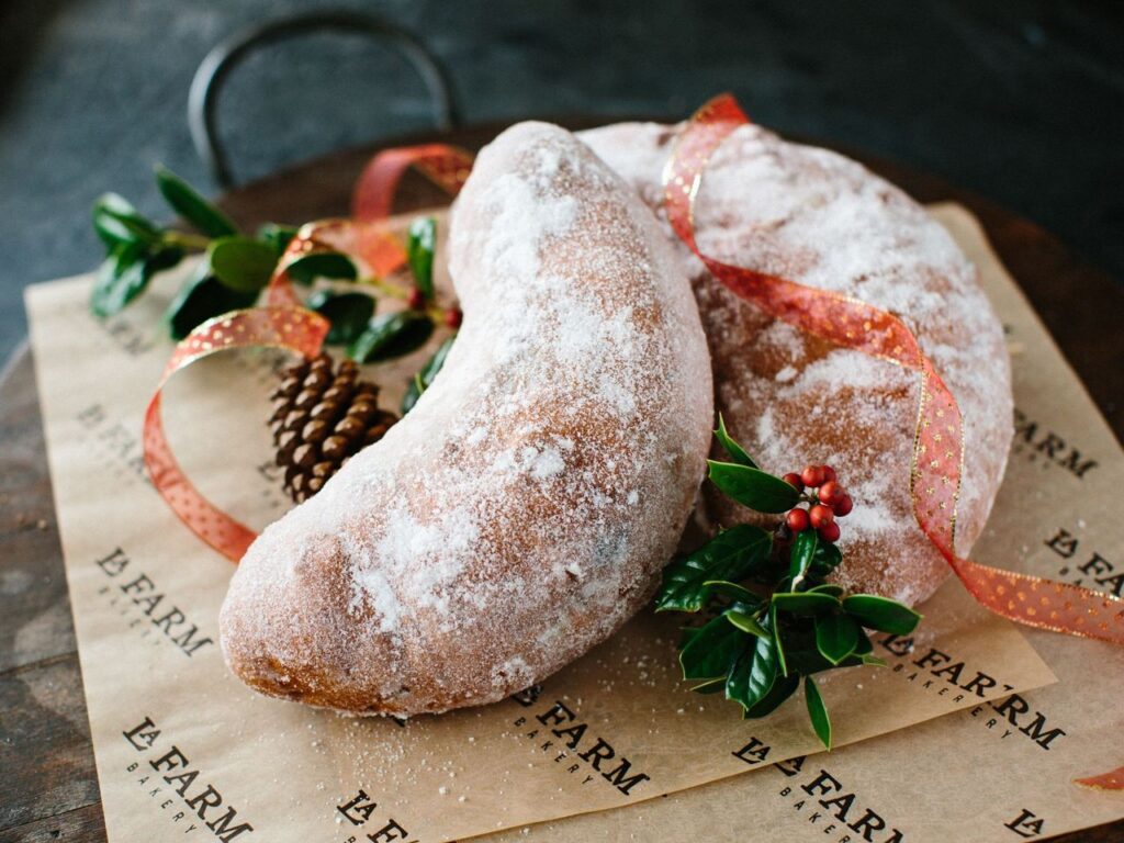 The menu: Pre-order holiday breads, pastry and desserts! La Farm Bakery celebrates 25 years of European artisan bread, pastries and desserts, including stollen and chocolate-cranberry to snowmen-shaped bread, Christmas tree croissants and decadent buche de noel.