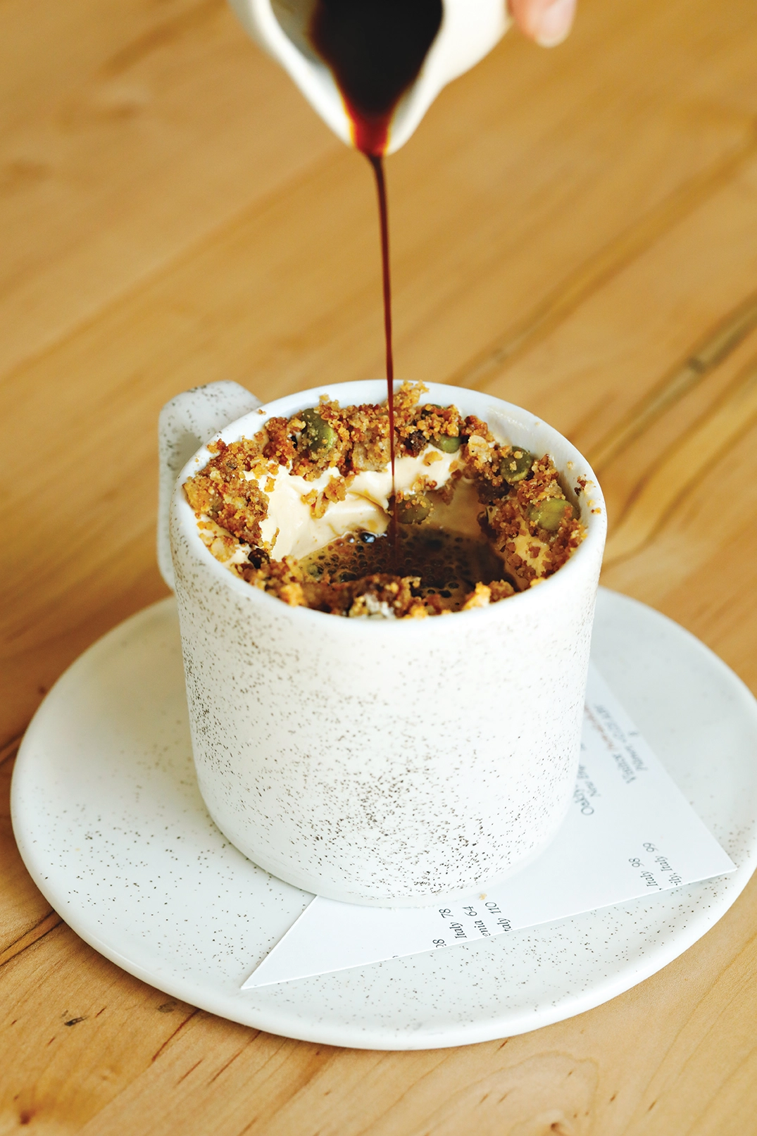 Another past favorite is pumpkin with an oat crumble from the fall. Vanilla with Sicilian olive oil and sea salt is always on one handle. And a rich affogato made with espresso from Raleigh’s own Black & White Coffee Roasters is available with any of the pairings.